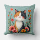 Niedliche Calico-Katze mit floraler Cotattacore-Äs Kissen