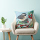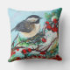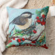 Schwarz gekappte Chickadee mit Berries auf Zweigkissen. Das Design auf diesem Kissen ist ein bezauberndes Winterkichergemälde. Ideal für Natur- und Vogelliebhaber! Dieses Kunstwerk ist auch auf anderen Produkten zum Mischen und Abgleichen von Jenn's Emporium erhältlich.