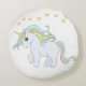 Niedliches Einhorn mit Sternen auf weißem Rundkissen.