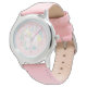 Kinderuhr aus Edelstahl mit rosa Lederarmband