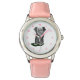 Kinderuhr aus Edelstahl mit rosa Lederarmband