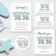 Niedliche Servietten für die Babydusche Ihrer Zwillingsjungen mit "Two Sweet Little Peanuts Are On Your Way" in einer Mischung aus weicher grauer Typografie und einem stylischen Drehbuch, und pastellblau Aquarellfarben eines Babyelefanten. Personalisieren Sie den Namen und das Duschdatum der künftigen Mutter in schlichter grauer Typografie.