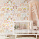Die Niedliche Rainbows und Daisy Blume Abstrakte Tapete! Dieses spaßige und trendige Design zeichnet sich durch farbenfrohe Aquarellenbögen und farbenfrohe Illustrationen aus. Ideal für Babyzimmer und Kinderzimmer, um die Dekoration der Zuhause mit einer Touch Süße zu vervollständigen.