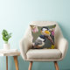 Kissen mit niedlichen Kichererbsen in einem blühenden Kirschbaum. Ein schönes Vogelleben künstlerisches Kissen mit einem ewigen Frühlingsthema.
