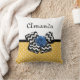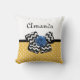 Mit diesem niedlichen, gelb-weiß gestrichenen Punktmuster mit quadratischem Kissen mit einem trendigen Zickzack Bogen in Schwarz und Weiß und einer schicken blauen Band-Rose verleihen Sie Ihrem Zuhause ein gürtelhaftes Ambiente. Machen Sie dieses gelbe und blaue Retro trifft moderne Design personalisiert, indem Sie den Namen Ihres Teenagers. Flachdruckbild, KEIN tatsächliches Rosettenband und Bogen.