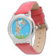 Uhr, Kinderuhr aus Edelstahl mit rosa Lederarmband