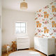 Lassen Sie Ihr Kinderzimmer oder Ihr Kinderzimmer mit Freude und Laune von unseren bezaubernden goldenen Retrivenwelpen und Blumenblättern verwöhnen. Diese hübsche Tapete ist perfekt geeignet, um eine fröhliche und einladende Atmosphäre zu schaffen. Sie ist die ideale Wahl für Eltern, die eine Touch spielerischer Schönheit auf ihre Zuhause legen möchten. Unsere Tapete zeigt eine bezaubernde Szene mit von Hand gezeichnet goldenen Retrivenwelpen, umgeben von niedlichen rosa Blume und spielerischen Pfotendrucken. Dieses reizvolle Design wird jedem Zimmer Lächeln und Wärme bringen. Von Moodthology entworfen