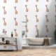 Niedliches großes Giraffe Baby Kinderzimmer Kindertapete. Dieses Muster und Farbschema Anzug eines Kinderzimmers eines Mädchens oder eines Jungen. Die Tapete ist aus texturiertem Vinyl, das sich leicht abziehen und kleben lässt. Es ist in einem 2' x 12' Blatt erhältlich und wird in verschiedenen Stilen und Größen geliefert, aus denen Sie auswählen können. Wählen Sie die strukturierte oder glatte Vinyl Tapete.