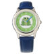 Niedliche, grüne Froschkinder beobachten, entworfen mit einem bezaubernden grünen Frosch in der Mitte, mit Grün um den äußeren Rand und den weißen Zahlen. Es ist perfekt für alle, die Lieben niedlich lächelnde Frösche und die Farbe Grün. Wählen Sie Ihre Uhrenbandfarbe aus!