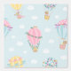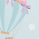 Niedliche Heißluftballons mit Tieren (Kaninchen, Bären und Katzen) Bogen, Wolken & Blume. Pastellfarben auf hellblauem Hintergrund.