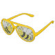 Eine große, gelbe und schwarze Hummel mit einem Bienenmuster mit einigen Blume, Herzen, Wirbel, Wirlen und Bienenpfaden.