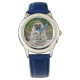 Kinderuhr aus Edelstahl mit blauem Lederarmband