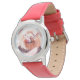 Uhr, Kinderuhr aus Edelstahl mit rosa Lederarmband