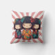 Dieses bezaubernde Kissen mit 3 niedlichen bunten japanischen Kokeshi Puppen.