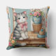 Niedliche Katze auf Veranda mit Blume & Patchwork Kissen