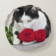 Niedliche Katze mit der Roten Rose Rundes Kissen