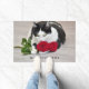 Niedliche Katze mit rote Rose Fußmatte