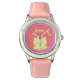 Kinderuhr aus Edelstahl mit rosa Lederarmband
