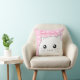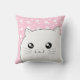 Eine sehr niedliche kawaii chibi Art chubby Kittykatze auf rosa Hintergrund der weißen Sterne und der Minikatzen, auf einem quadratischen Kissen, mit der Fähigkeit, Ihren Namen zu addieren Ihr Name auf einer Seite.