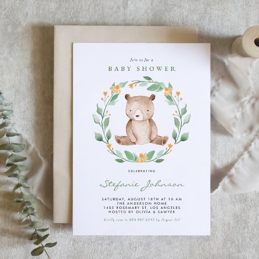 Fügen Sie Ihrem Event einen niedlichen Holzakzent hinzu mit diesen bearbeitbaren Papierservietten. Es zeigt Aquarellbilder eines Babybären mit grünem Kranz. Diese Papierservietten aus Holz sind perfekt für Babyduschen und Geburtstagspartys. Personalisieren Sie Ihre eigenen Texte.