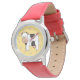 Uhr, Kinderuhr aus Edelstahl mit rosa Lederarmband