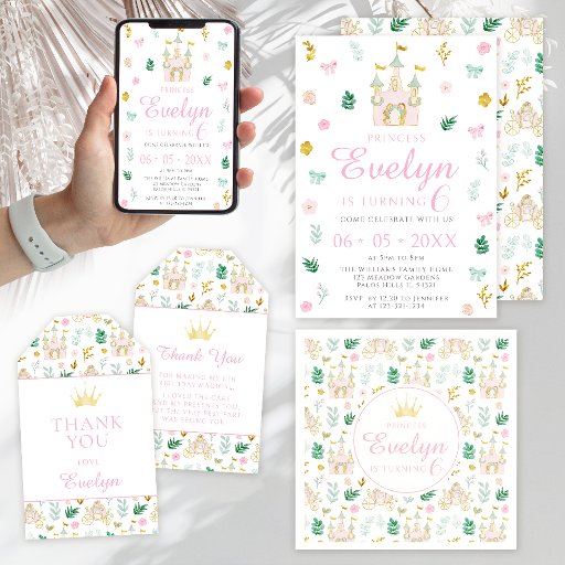 Entdecken Sie unsere hübschen, faltbaren Dankeschön-Karten, die speziell für ein bezauberndes Geburtstagsmädchen zugeschnitten sind. Sie zeigen ein herrliches pastellrosa und aquamarine Blume, Schlösser, Kutschen und goldene Krone. Entdecken Sie diese wunderbaren Preppy-Karten, um Dankbarkeit im Stil zum Ausdruck zu bringen.