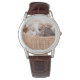 Uhr, Vintage Männeruhr mit schwarzem Lederarmband