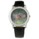 Uhr, Vintage Männeruhr mit schwarzem Lederarmband