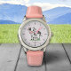 Eine rosa Uhr mit einer niedlichen Kuh auf Gras und einem anpassbaren Vornamen. Das könnte ein tolles Geschenk für ein Kind sein, das Kawaii-Tiere Liebe! Fügen Sie einfach den Vornamen hinzu und bieten Sie ihn an!