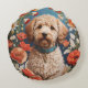 Niedliche Labradoodle-Daisy- und Mohnblüte-Blume Rundes Kissen