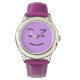 Uhr, Kinderuhr aus Edelstahluhr mit lila Lederarmband