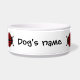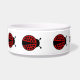 Niedliche Ladybugs rund um ein Hundefutter. Fügen Sie ihm den Namen Ihres Hundes hinzu.
