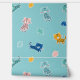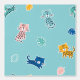 Niedliche kleine fröhliche, farbenfrohe Leoparden mit Dschungelblättern auf Aquablau/Turqoise Hintergrund. Leopard sind kobaltblau, hellblau, rosa, aquamarin und Senf.