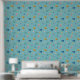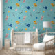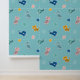 Niedliche Leoparden mit Dschungelblättern auf Aqua Tapete