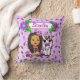 Personalisierte Niedliche Lila hispanische oder afroamerikanische Fee mit langen, schwarzen, lockigen Haaren und Kandy Sprinkles und Blume werfen Kissen für ein kleines Mädchenzimmer.