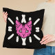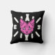 Niedliche Lila Katze auf weißen Streifen Schwarz M Kissen
