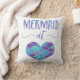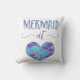 Niedliche Meerjungfrau am Herz Throwkissen. Dieses Kissen hat das Sprichwort "Meerjungfrau am Herzen", das in einen schönen Schriftart geschrieben wird, der herein mit den blauen, lila und grünen Watercolors gefärbt wird. Schließen Sie mit blauem, lila und grünem Herzen mit Meerjungfrauskalen ab.