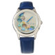 Kinderuhr aus Edelstahl mit blauem Lederarmband