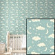 Niedliche Mondsterne Wolken auf weichem Grün Tapete