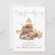 Niedliche Maus Äpfel Foliage Happy Friendsgiving. Eine süße Maus sieht schläfrig und inhaltlich aus, nachdem sie ein Fest gemacht hat, mit lässiger Handschrift Set Typografie für Happy Friendsgiving oben. Personalisieren Sie einfach Ihre Namen und Gruß am Ende. Ein koordinierendes Herbstrot ist auf der Rückseite.