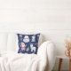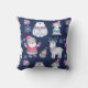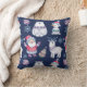 Dieses unterhaltsame Holiday Kissen hat ein Muster nordischer Charaktere, darunter ein Eisbär, ein Rentier, ein Schneemann und der Weihnachtsmann. Weitere Bilder sind Schneeflocken und farbenfrohe Ornamente. Die Bilder werden auf einem dunkelblauen Hintergrund platziert und über die Oberfläche gekachelt. Feierlich und unterhaltsam für alle Altersgruppen! Beide Seiten des Kissens haben das gleiche Design.