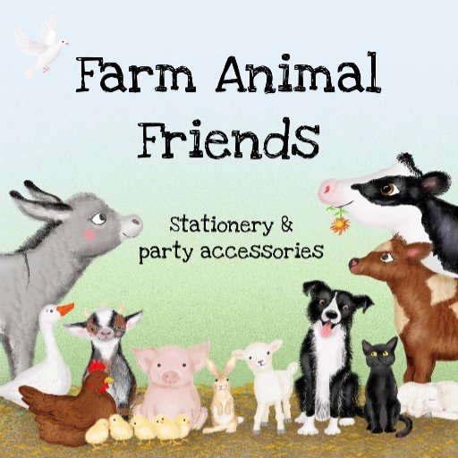 Danke für ein Geschenk für eine Babydusche, Taufe, Taufen, Namensfeier oder Kindergeburtstag mit diesem niedlichen Farmtier Freundschafts-Geschenktag für ein Gastgeschenk, mit einem Esel, einer Gans, einer Henne und ihren Küken, einer Kinderziege, einem Ferkel, einem Kaninchen, zwei Lämmern, einer Grenzkollie, einer schwarzen Katze und einer Kuh und ihrem Kalb.