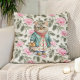 Kissen mit Vintagem Gemälde einer niedlichen Oma-Katze mit rosa Schürze und grünem Pullover.