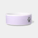 Niedliche Haustierschüssel mit dem Namen Ihres Haustieres und einem Pfotendruck auf beiden Seiten in Grau über einem pastellfarbenen lila Hintergrund. Diese einfache und lustige Tierschale ist ein tolles Geschenk für Hunde- und Katzenliebhaber.