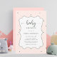 Diese Babydusche lädt mit einem pastellfarbenen Polka-Dot-Muster und einem dekorativen Rahmen auf einem rot-rosa Hintergrund ein.