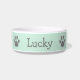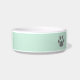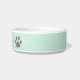 Niedliche Haustierschüssel mit dem Namen Ihres Haustieres und einem Pfotendruck auf beiden Seiten in Grau auf einem pastellfarbenen, minzgrünen Hintergrund. Diese einfache und lustige Tierschale ist ein tolles Geschenk für Hunde- und Katzenliebhaber.