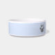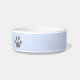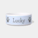 Niedliche Haustierschüssel mit dem Namen Ihres Haustieres und einem Pfotendruck auf beiden Seiten in Grau auf pastellblauem Hintergrund. Diese einfache und lustige Tierschale ist ein tolles Geschenk für Hunde- und Katzenliebhaber.