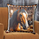 Kissen mit einem Gemälde eines niedlichen Pferdes in einem Stall mit anderen Tieren. Wunderschön für einen Bauernhof oder einen Pferdefreund.