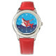 Kinderuhr aus Edelstahl mit rotem Lederarmband