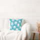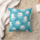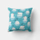 Ein Kissen mit einem niedlichen Weihnachtsmuster mit Eisbären, die auf schwimmendem Eis mit roten Weihnachtsmannmützen stehend sind. Kleine Iglus, Schneeflocken und Fische umgeben diese bezaubernden Eisbären, die auf dem Wasser abkühlen. Hellblauer Hintergrund. Niedliche und skurrile Urlaubsplanung.